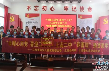 近日下午,由上高县妇联主办,上高县女企业家协会协办的“巾帼心向党 喜迎二十大”“春蕾圆梦”捐资助学活动在上高二中行政楼三楼会议室举行,仪式由学校学生资助中心主任曹仕中主持,县妇联主席鲁菊妹、县女企业家协会会长易美丽、学校副校长胡奇初等出席了发放仪式。