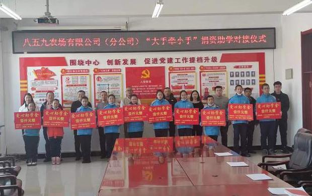 为了弘扬扶贫济困、团结友善、和谐健康、互帮互助、奉献爱心的博爱精神,倡导助人为乐、无私奉献的社会风尚,近日,八五九分公司开展了“大手牵小手”捐资助学活动,在社会各界的帮助下,会有更多优秀学子实现人生梦想。
