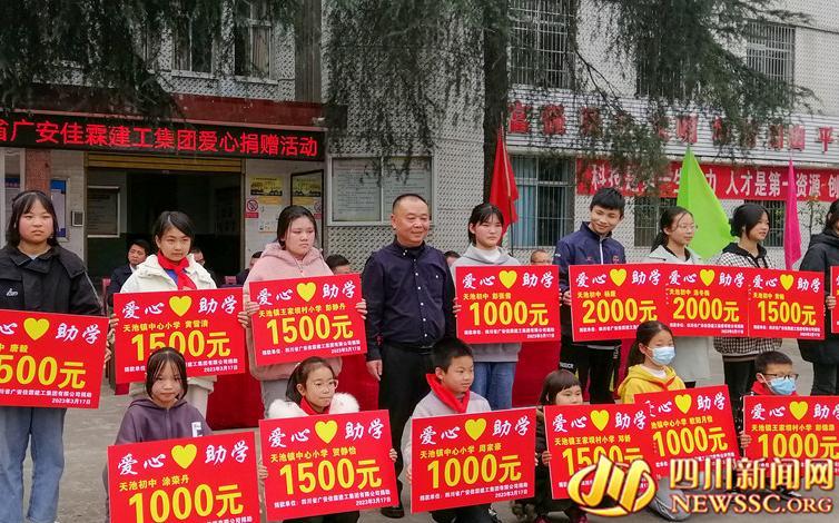 3月21日,四川省华蓥市老区建设促进会会员、广安佳霖建工集团董事长邹佳霖一行,专程来到地处华蓥山区的天池镇,把2.1万元现金分别捐赠给天池初中、天池镇小学的15名贫困学生,让这些孩子感受社会大家庭的温暖,帮助他们树立起战胜困难、勇敢面对生活的勇气,点燃他们新的希望。
