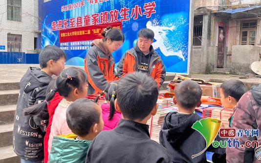 几天后,研支团在乐至县童家镇放生小学和南塔九年义务教育学校发放捐赠物资,引导孩子们养成“勤读书、爱运动”的好习惯,助力学生放飞梦想、点亮青春。