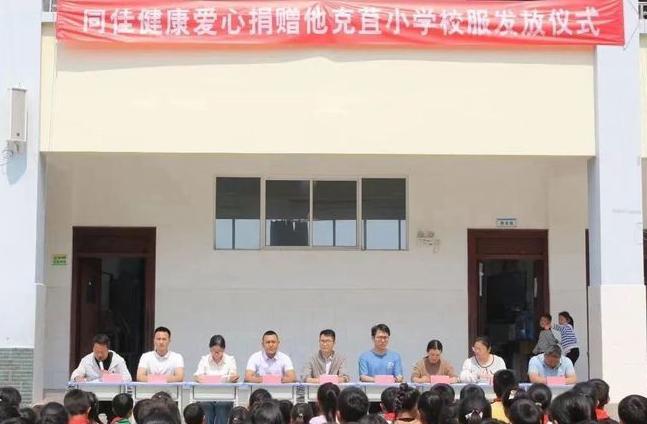 2022年6月,同佳健康有限公司为大桥乡他克苴小学捐赠100000元用于购买智能一体机、电脑、书籍、体育器材等教学物资,携手校方打造了“同佳健康希望图书室”。此次捐赠,又向他克苴小学捐赠校服130余套,覆盖全体学生。