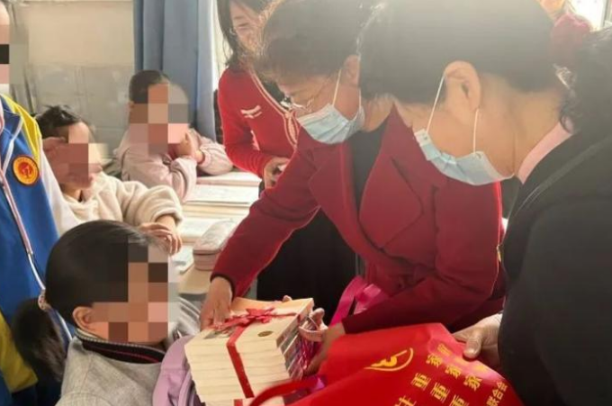 4月12日上午怀仁市妇联全体干部再次来到怀仁六小,向学校了解女童学习及精神状态,并给苗某带来了书籍,书包、文具等学习用品。