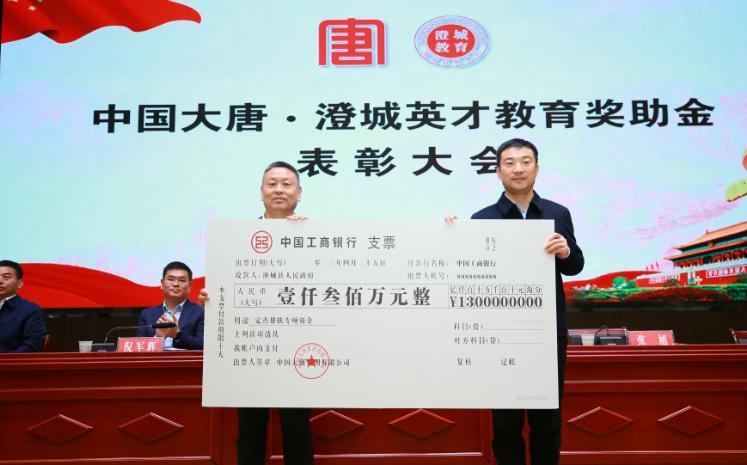 4月25日,在中国大唐澄城英才教育奖助金表彰会上,中国大唐集团有限公司为澄城县587名优秀师生发放助学金、奖学金、奖教金等共计120万元,以实际行动为当地教育事业的发展提供大力支持。活动现场,大唐陕西公司还向澄城县捐赠1300万元帮扶资金,助力澄城乡村振兴工作再上新台阶。