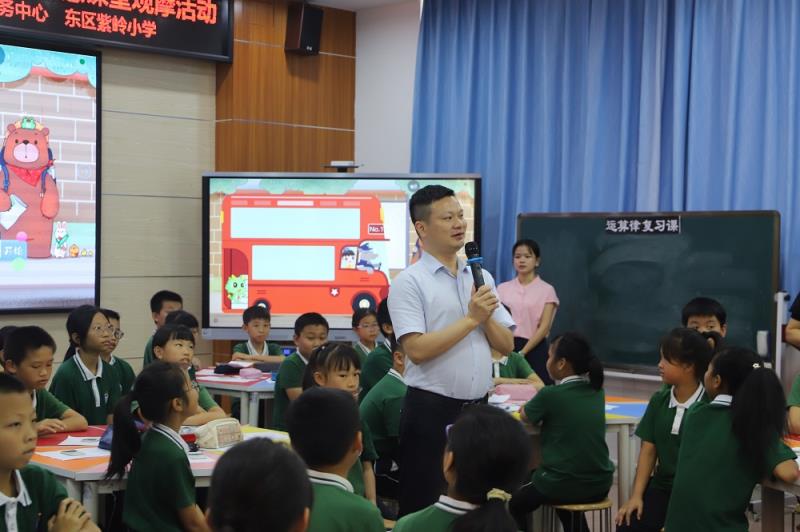 此后的行程中,观摩学习团还特地到广东省中山市东区紫岭小学旁听了使用“爱种子”教学系统上的数学和英语课程。实地探访中,紫岭小学何建明校长、教务主任李建老师就“爱种子”在学校的落地情况做了详细介绍,中山市东区教育局黄志煊主任就“爱种子”项目在中山市的开展情况也做了简单的概况说明。此番实地走访交流,使得观摩团对于“爱种子”教学系统有了更为具象化的了解。