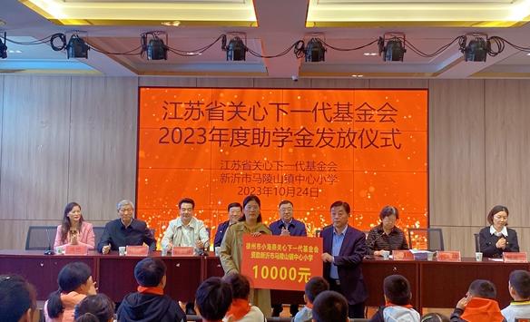 活动现场,江苏省关心下一代基金会资助新沂市马陵山镇中心小学57名学生34200元,徐州市小海燕关心下一代基金会资助新沂市马陵山镇中心小学 10000元。