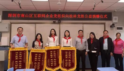 在本次活动期间,共有600多名互联网企业党员及群众参与线下捐步,累计捐赠里程2.06万公里,五家南山区企业共同认捐51500元,并转换为课桌课椅送到广西壮族自治区桂林市龙胜各族自治县龙胜镇小学,10月23日,此次南山互联网企业党建公益活动在龙胜小学迎来了为期两天的捐赠回访仪式。其中迷你创想科技(深圳)有限公司为小学捐赠36套课桌椅,为孩子们创造更加舒适的学习环境,助力青少年茁壮成长。