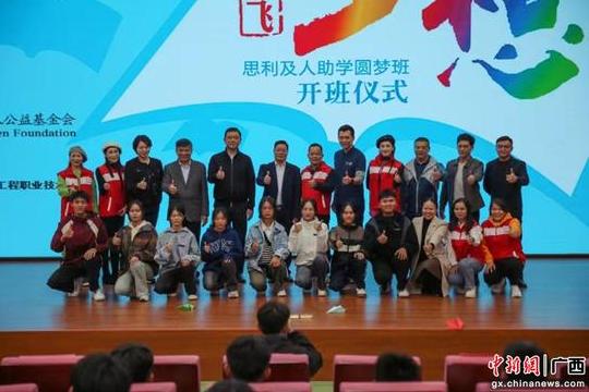 “思利及人助学圆梦”开班仪式近日在广西质量工程职业技术学院举行。广西质量工程职业技术学院与思利及人公益基金会在平等、自愿的基础上,就“思利及人助学圆梦”项目友好协商,订立协议,开班起航,共同帮助困境家庭学子圆梦。