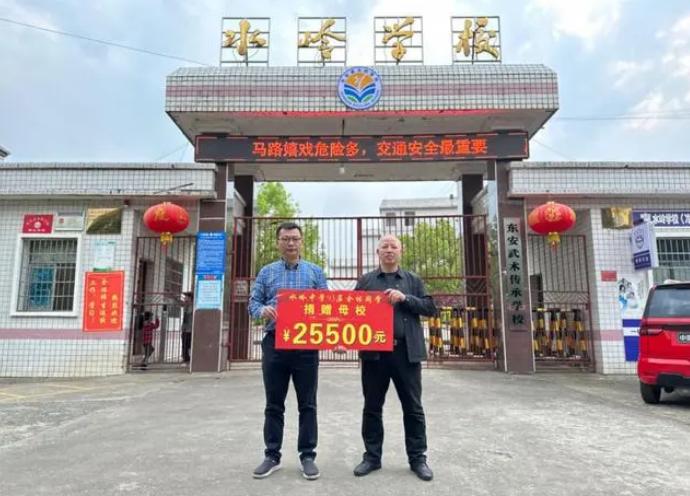 近日,东安县水岭学校93届校友三十年聚会,校友们慷慨捐赠,上海市湖南商会联席会长、上海市永州商会会长、上海海洋地质勘察设计有限公司董事何艳平代表水岭学校93届校友向母校捐款25500元,助力家乡教育事业发展。
