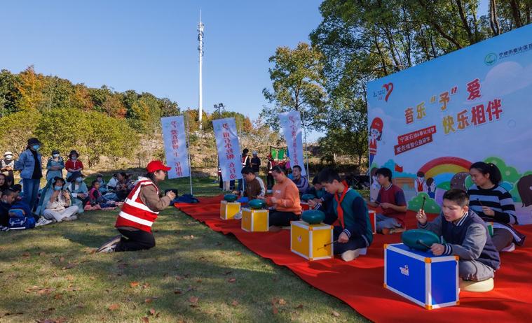 活动在孩子们轻快的“空灵鼓”弹奏中拉开了序幕。中国石化浙江石油宁波分公司供图当天下午,孩子们在老师及志愿者的陪同下乘坐公交车,来到奉化仁湖农趣园。他们一同游园,亲近大自然、感受大自然、探索大自然。志愿者们一一解答同学们的疑惑,将知识讲解贯穿整个活动之中,帮助他们认识自然。