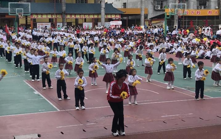 当天下午,扶壮学校校园里彩旗飞扬,锣鼓阵阵,师生喜气洋洋,运动会开幕如期举行。国旗、会旗、会徽首先入场,接着中小学各年级方队有序进场。在通过主席台时,很多年级方队进行形式多样的歌舞表演,赢得了观众的阵阵掌声。入场结束后,各年级进行大课间活动展示,有国学操表演、啦啦操表演、韵律操表演,还有全场的歌舞快闪《爱我中华》,内容丰富,精彩纷呈。