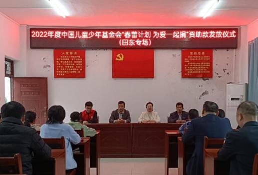 企业资助贫困学生,田东县举行2022年度“春蕾计划为爱一起捐”资助款发放仪式