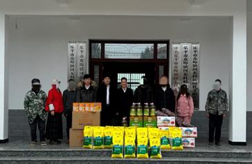 工作人员为村民送去了大米、菜籽油、红枣等慰问物资,