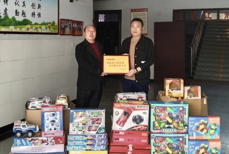 学校负责人赵彬代表学校接受了这批爱心玩具,并向奉献爱心的李建华表示感谢,表示该店送来的不仅是物质财富,更是宝贵的精神财富!这些玩具可以极大地帮助幼儿全面发展。情系家乡的善举更是孩子成长路上的一面镜子,让孩子们学会感恩,激励孩子们茁壮、健康成长。