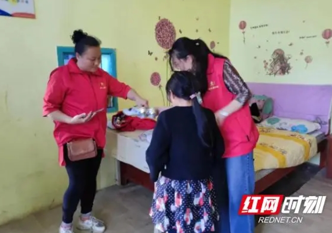 清江桥乡田家村受助学生小慧、小政(均化名)的父亲聋哑,母亲智力不正常,小慧自己也是聋哑人,她姐弟三人全靠年逾古稀的爷爷奶奶抚养,有时父亲外出打点零工。大邵公益得知此情况后,立即将她姐弟二人纳入逆风飞翔项目服务对象。3月24日,当小慧看到大邵公益和县关工委志愿者上门走访时,迅速扑进志愿者左西霞、王玲等人的怀中撒娇。进屋后,左西霞等人给她换上了新宁七波辉品牌店爱心企业家黄艳爱心捐赠的新衣服和新鞋,并给小女孩梳头扎辫,亲如母女。小慧爷爷接过2名孩子的励学金感激万分,动情地说:“我儿子媳妇是残疾人,感谢你们好心人的帮助啊!”