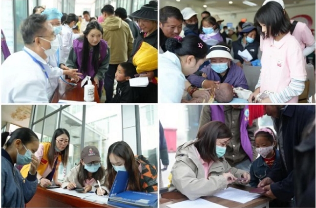 在义诊筛查现场,像小扎西这样的小患者都在静静等待接受各项医疗检查。现场忙碌的人群中有来自全国各地的150余位医护人员和志愿者,还有来自西藏滴水之海爱心公益社的队员,他们为医护人员和志愿者提供藏语翻译,架起沟通的桥梁,这也是他们第8次为“母亲微笑行动”提供志愿服务。本次活动还得到了林芝市人民医院、广东省第十批援藏工作队、万达商管集团以及农夫山泉、百世公益、浙江优亿、安联人寿、一番齿科的大力支持。