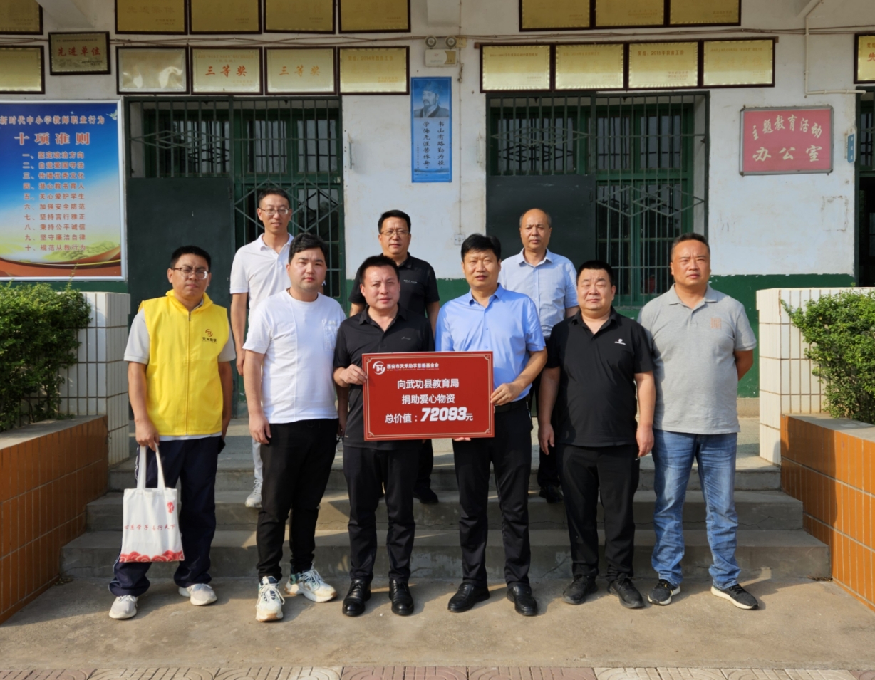 暖暖爱心,点燃希望之光,片片真情,托起明日朝阳。2024年9月23日下午,西安市天禾助学慈善基金会向武功县教育局课桌椅捐赠活动在武功县西塬初级中学举行。天禾助学慈善基金会向西塬中学捐赠课桌椅210套、办公椅30把、音响30套、益智玩具486套,总价值72093元。 武功县教育局副局长刘改军发表了热情洋溢的讲话,他首先对西安市天禾助学慈善基金会的助学善举表示衷心的感谢,他强调我县是教育强县,重视教育,招录了一大批特岗优秀教师,他们在各自工作岗位上做出了突出的成绩,希望借此契机吸引更多优秀人才,进一步提升武功教育教学质量。 武功县西塬初级中学校长梁志鹏致感谢辞,他代表学校全体老师和同学向关心支持学校发展的“西安天禾助学慈善基金会”和参加此次活动的教育局各位领导表示热烈的欢迎和感谢,他表示“奉献爱心,收获希望”,天禾助学基金会爱心捐赠的义举,将福泽千秋,惠泽学子。同时,他希望学生们努力学习,不要辜负爱心人士的期望,以优异成绩回报社会。 西安市天禾助学慈善基金会副理事长尚福稳举牌捐赠,武功县教育局副局长刘改军接受捐赠,尚副理事长深情地表示教育是国家的未来,希望通过这次捐赠,为孩子们的成长贡献一份力量,让他们在更好的环境中学习和生活,他表示还愿意帮助更多有困难,和有重大疾病的师生。 此次爱心捐赠活动,不仅为西塬中学带来了实际的帮助,更在学生们的心中种下了爱与感恩的种子。相信在社会各界的关心与支持下,西塬中学的学子们将茁壮成长,为实现自己的梦想而努力拼搏,为国家的繁荣富强贡献自己的力量。