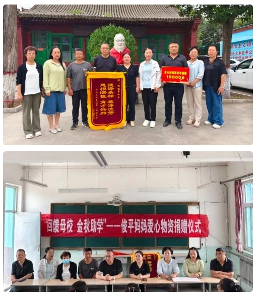 郭俊平是土生土长的平遥人,后来,离开家乡远嫁江苏,一番艰辛创立了江苏宝时达动力科技有限公司,从事汽车配件研发与生产。郭俊平小时候,家中兄弟姐妹多,经济条件不好,没有良好的教育环境,离开家乡创办企业之后,她一直惦记着家乡的教育、家乡的困难学生。2015年,在平遥县良清爱心月嫂公司负责人赵良清的牵线搭桥下,郭俊平女士开启了一直延续至今的爱心助学回馈家乡之路。2015年至2018年通过平遥慈善总会捐赠助学金231700元,2019年至2024年通过平遥县妇联、平遥县红十字会捐赠助学金551400元,2023年向洪善镇沿村堡小学中学捐赠教学用品和体育设施26000元。十年来,爱心妈妈郭俊平累计捐赠助学金809100元。她最早资助的一批孩子如今已经上了大学,还有一些孩子在她的资助下顺利完成学业走上了工作岗位,也有的孩子毕业之后去了她的企业里工作,甚至还有个别孩子俊平妈妈亲自带在了身边,安排好了学校和生活。