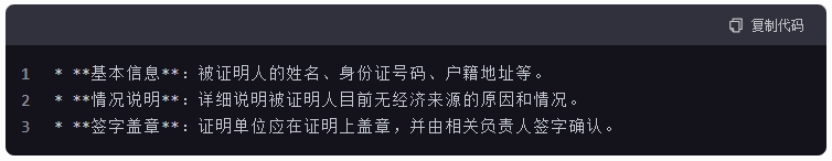真实性:无经济来源证明必须真实反映被证明人的经济情况,不得虚假开具。