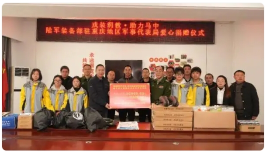在第62个学雷锋纪念日到来之际,石柱县马武镇中学迎来了一批特殊的客人,陆军装备部某军代局领导及官兵代表走进马武镇中学,开展“戎装润教·助力马中”爱心助学捐赠活动,以助学兴教的实际举措传承雷锋精神,为乡村振兴注入教育力量,更在莘莘学子心中播撒下爱国报国的种子。
