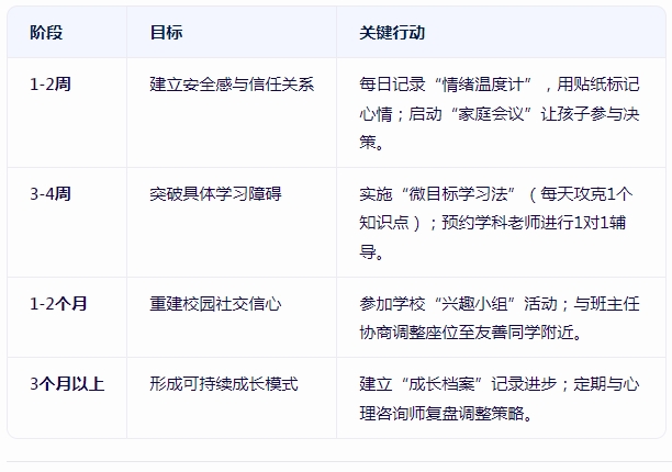 通过以上系统性干预,可逐步帮助孩子重建对学校的积极认知,提升学习效能,克服社交恐惧。关键在于将大目标拆解为可操作的小步骤,用持续的正向反馈替代批评指责。