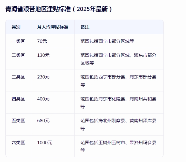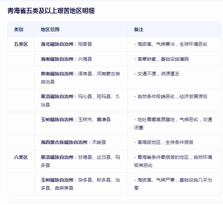 青海艰苦地区类别分类,青海地区分类5类明细,青海1一6类地区划分最新