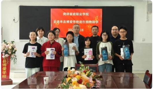 阳春四月,春暖花开。4月18日下午,菏泽家政职业学院思政部赴单县博爱学校开展捐物助学活动。思政部负责人孔卫,单县教育和体育局教育工委主任姚红坤,单县博爱学校副校长高健以及博爱学校师生代表共100余人出席此次活动。