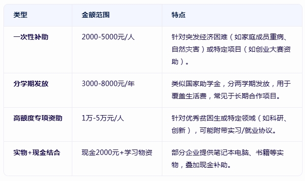 企业助学金的金额差异较大,受企业规模、资助目的、合作深度等因素影响,常见标准如下: