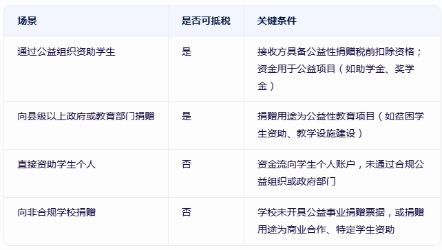 直接资助学生个人:企业直接将款项支付给学生或其监护人,未通过合规公益组织或政府部门,视为“非公益性捐赠”,无法抵税。