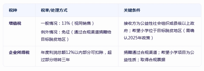 若通过合规渠道捐赠且希望小学位于目标脱贫地区,可免征增值税。