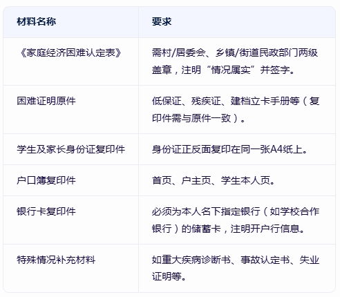 诚信申请:学校会通过大数据比对(如查询家庭房产、车辆信息)核实困难情况,造假将取消资助资格并记入诚信档案。