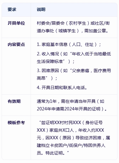 2. 贫困证明的开具要求