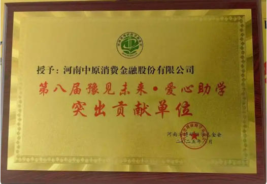 践行社会责任 中原消金获“豫见未来・爱心助学”突出贡献单位