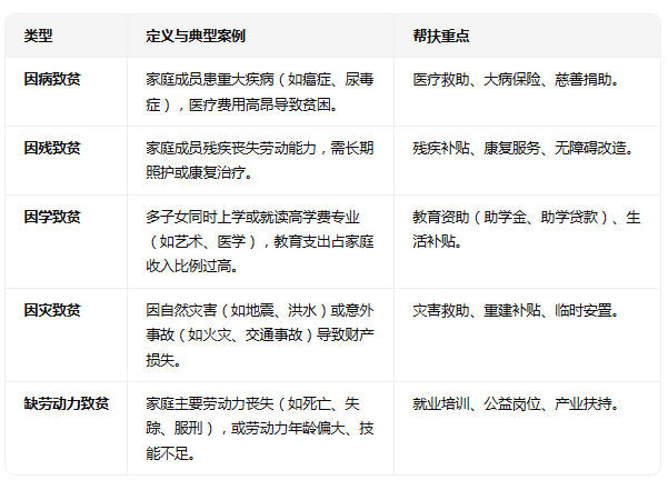 政策制定:政府根据贫困类型设计差异化政策(如医疗救助侧重因病致贫家庭,教育资助侧重因学致贫学生)。
