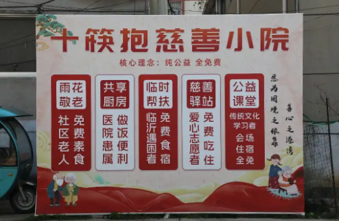 “社区老人免费素食、医院患属做饭便利、临沂遇困者免费食宿、公益课堂住宿全免……”在山东临沂沂河新区白沙埠镇北孟家庄村一处农家四合小院里,赫然挂着一块“临沂市十筷抱慈善小院”的招牌。大门对过耸立的一块版面上,“纯公益、全免费”六个字格外醒目。在这里,一处小院承载起四方善意,温暖着一城人心。