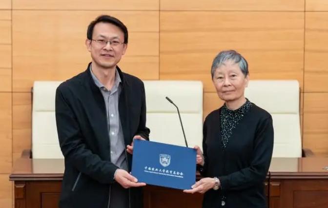 辛贤代表教育基金会为欧阳莹之颁发中国农业大学教育基金会荣誉理事证书。