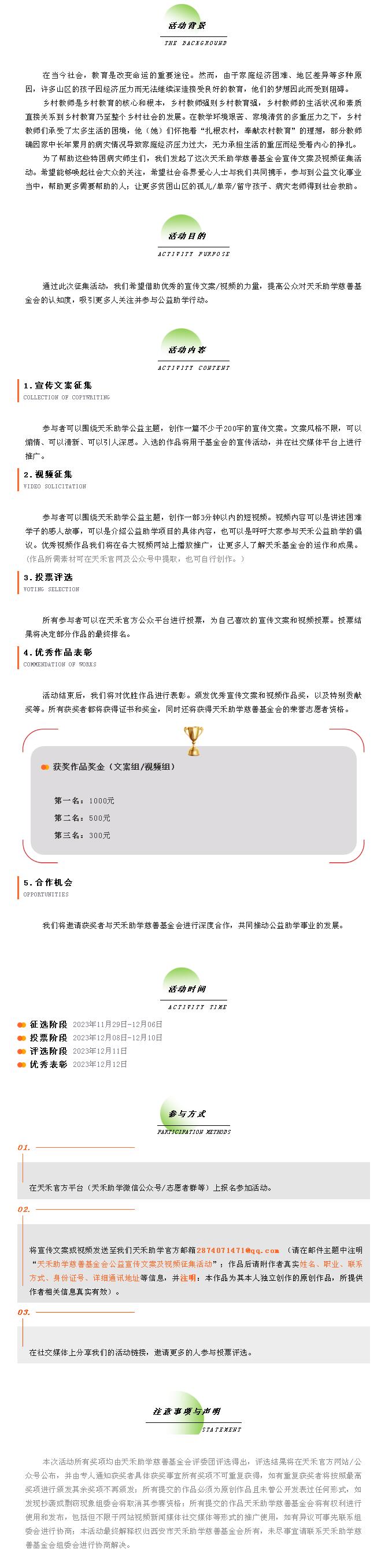 西安市天禾助学慈善基金会 | 公益宣传文案、视频作品征集大赛
