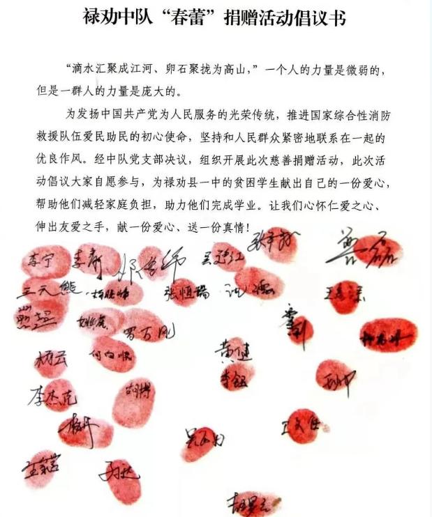 中队积极与禄劝一中了解资助学生学习及家庭情况,最终确定了1名品学兼优且家庭困难学生,并组织全体指战员开展募捐活动,让贫困学生感受到消防救援人员的温暖,勉励他们奋发图强、努力进取,好好学习,完成学业为社会作出贡献。此次捐资助学活动不仅是经济上的帮助,更重要的是精神上的鼓舞,进一步树立了新时代“火焰蓝”为民、爱民、护民的良好形象。