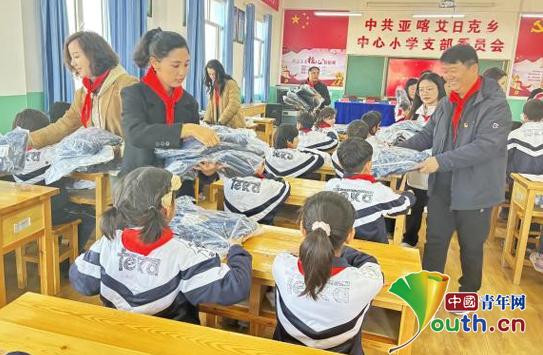 日前,莎车团县委联合新疆师范大学第25届研究生支教团在亚喀艾日克乡中心小学共同开展了以“童心筑梦为疆来”为主题的公益捐赠活动。