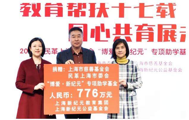 截至目前,上海新纪元教育集团对教育帮扶事业的捐赠总额逾1亿元,惠及家庭困难学生2000余人,培训教师和干部队伍14000余人次。