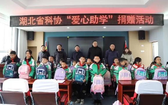 湖北省科协一行向学生代表捐赠书包、科普书籍、铅笔、练习本等助学物资80套,贴心询问孩子们的学习情况和生活状况,并叮嘱孩子们胸怀报国之志,心怀感恩之心,克服困难,好好学习,成长为对国家、对社会有用之才。学生代表表示,会加倍努力学习,将来服务家乡、回馈社会、报效祖国。