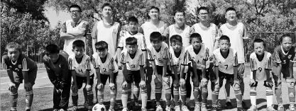 来源:黑龙江日报报业集团爱好足球的编辑记者与香和小学足球队合影留念。
