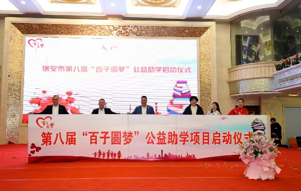 1月14日,瑞安市第八届“百子圆梦”公益助学项目在塘下镇启动。200多名爱心人士共聚一堂,共同见证新一届爱心助学活动的开启,现场还举行了募捐、结对仪式。