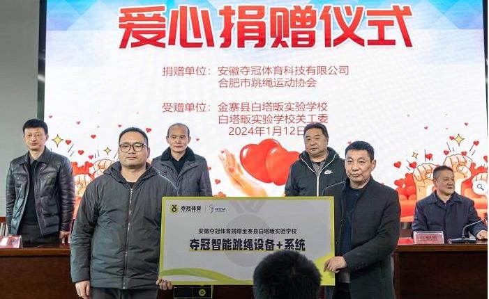 1月12日上午,合肥市跳绳运动协会专家教师一行走进金寨县白塔畈试验学校开展爱心助学活动,为学生代表赠送运动服装和学具,安徽夺冠体育科技有限公司向学校捐赠智能跳绳设备系统,开展了趣味跳绳游戏展示、花样跳绳表演、体育教学讲座、优秀课程展示和现场教学研讨交流等系列活动。