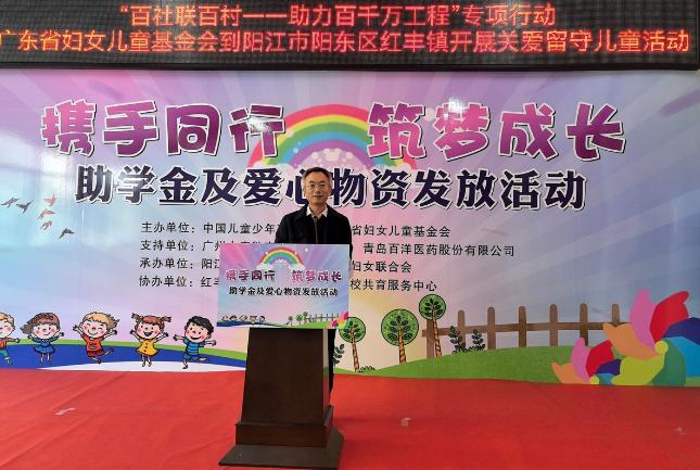 中国儿童少年基金会联络发展部部长徐晓光,广东省妇女儿童基金会副秘书长郑思琳,阳江市政府副秘书长黄怡,阳江市妇联党组书记、主席莫锦云,阳东区政府副区长李南轼,广州中康数字科技有限公司副总裁李俊国,青岛百洋医药股份有限公司代表马永忠,以及阳江市、阳东区、阳东区红丰镇相关部室负责人及师生代表等约150人参加了活动。