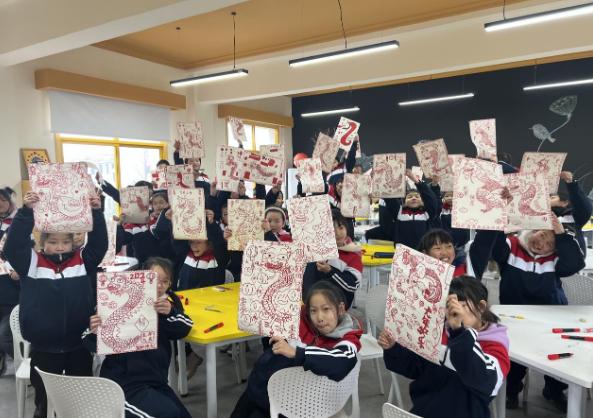 来自北京尤伦斯艺术基金会的美术指导老师陈睿分别为两所学校的学生开展了“龙年”主题“福”字创意课和明信片创意设计课。