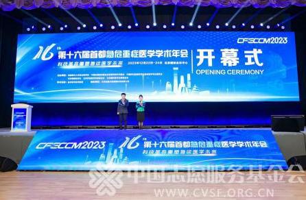 2023年12月23日,由中国志愿服务基金会“医路有我”专项基金、首都医科大学急诊医学系、中国研究型医院学会急救医学专业委员会、北京健康促进会、北京科创医学发展基金会、北京融和医学发展基金会等单位共同主办的“第十六届首都急危重症医学学术年会”于北京国际会议中心隆重开幕。中央社会工作部五局一处处长曹晶、首都医科大学附属北京朝阳医院郭树彬主任、中国志愿服务基金会副秘书长刘霞及全国急诊医学界的数百名专家代表出席了开幕仪式。