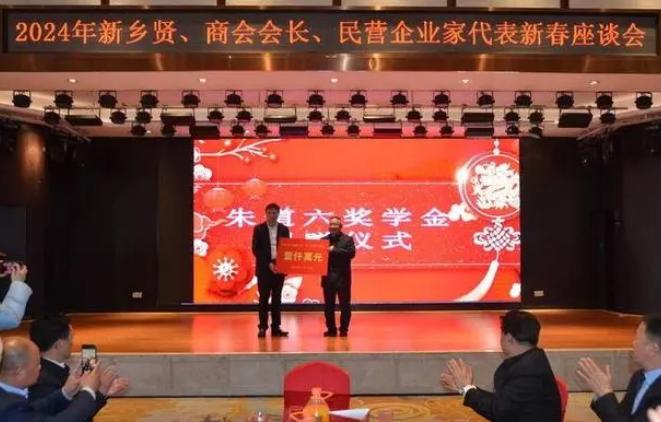 2月16日,大悟县隆重举行2024年新乡贤、商会会长、民营企业家代表新春座谈会,座谈会上,大悟县首届最美新乡贤、楚商联合会常务副会长、天津市工商联合会副会长、天津市湖北商会会长、天津路顺科技产业集团董事长朱道六,再次展现大爱善举,捐资1000万元给大悟一中,设立“朱道六奖学金”,大悟一中校长熊俊利上台接受捐赠。