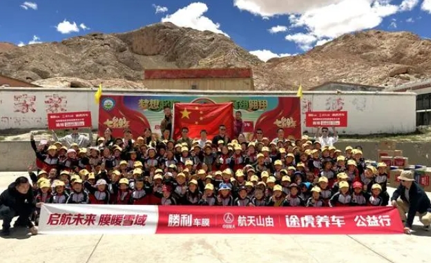 公益活动发起方代表、胜利车膜品牌负责人刘伟表达了企业在西藏开展公益活动的初心,“教育是民族振兴、社会进步的基石,而孩子们是祖国的未来、是民族的希望。很荣幸胜利膜类产品能够帮助学校师生抵御紫外线照射,希望通过这次助学活动传递出我们对教育的支持和对孩子们的关爱。胜利车膜将在优质产品研发和承担品牌社会责任上持续投入。”航天山由相关负责人表示,将继续践行初心使命,用航天科技创造美好生活,为公益事业发展贡献力量。途虎养车相关负责人表示,途虎养车将与行业伙伴一道,以实际行动履行社会责任,为行业和社会做出积极贡献。
