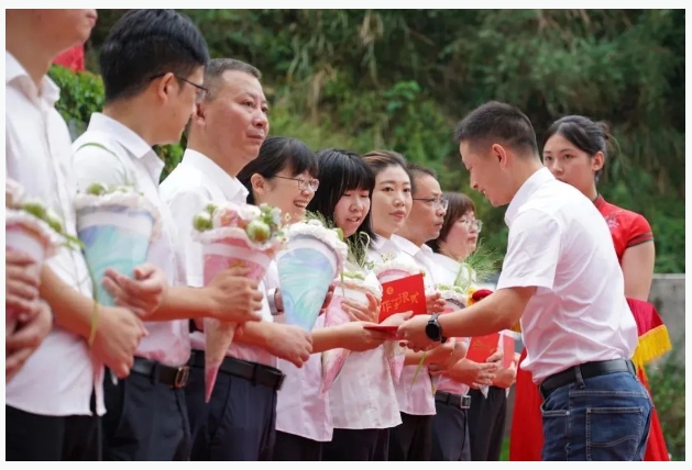 民建会员、磐安县新境界旅游开发有限公司董事长张伟斌热心公益,特别关注母校磐安二中发展。从2018年开始,在校设立“灵江源·梅花奖”系列奖金,到今年已经是第七届了,累计出资100多万元,用于奖励教学认真、学习勤奋的优秀师生。9月4日上午,张伟斌参加了磐安县第二中学第40个教师节表彰大会暨2024学年开学典礼,为获得奖励的优秀师生颁奖,同时也表达了对学校锐意进取,开拓创新,不断提升教学质量和办学水平的期许;感谢教师们坚守教育初心,持续改进教学方法,提升教学质量;鼓舞学生们更努力挥洒青春汗水,争做奋发有为、堪当重任的时代新人。