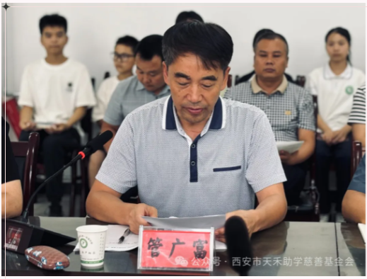 随后,天禾基金会公益事业部部长谢磊广在发言中表示很荣幸参加此次捐赠仪式,教育是培养人才、塑造未来的伟大事业。天禾慈善基金始终坚信每个孩子都应该拥有良好的学习环境。昇昱集团的善举,正是对这一信念的有力支持,在这里向昇昱集团表示衷心的感谢,他们的慷慨捐赠,极大地改善了山阳第一初级中学的条件。希望这 40 套办公桌椅能够成为老师们教学的好帮手,让他们更加专注地传授知识,培养出更多优秀的学生。
